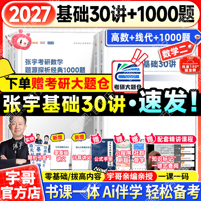 【宇哥指定店铺】张宇2027考研数学基础30讲+1000题 高等数学线性代数概率论张宇全家桶 启航教育书课包 宇哥推荐【数二】27张宇基础30讲+题源1000题