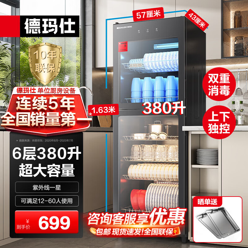 德玛仕(DEMASHI)商用消毒柜 立式消毒碗柜消毒柜家用酒杯茶杯餐具碗筷家用厨房紫外线消毒柜大容量立式消毒柜 6层380升丨上下层独控丨中温紫外线消毒