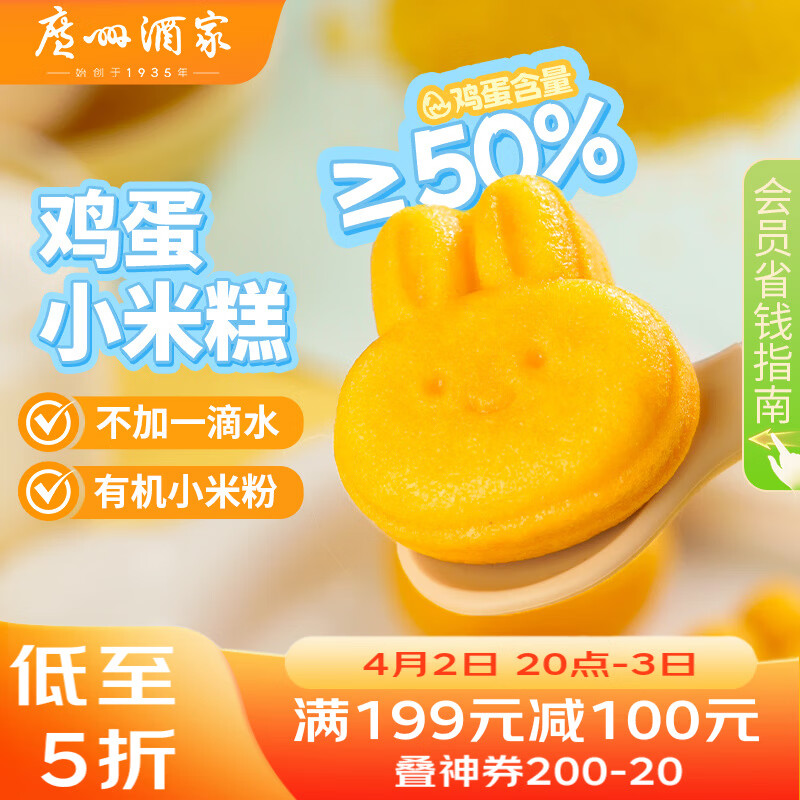 广州酒家鸡蛋小米糕200g*2袋 16个装 儿童早餐速食即食速冻生鲜面点开学季