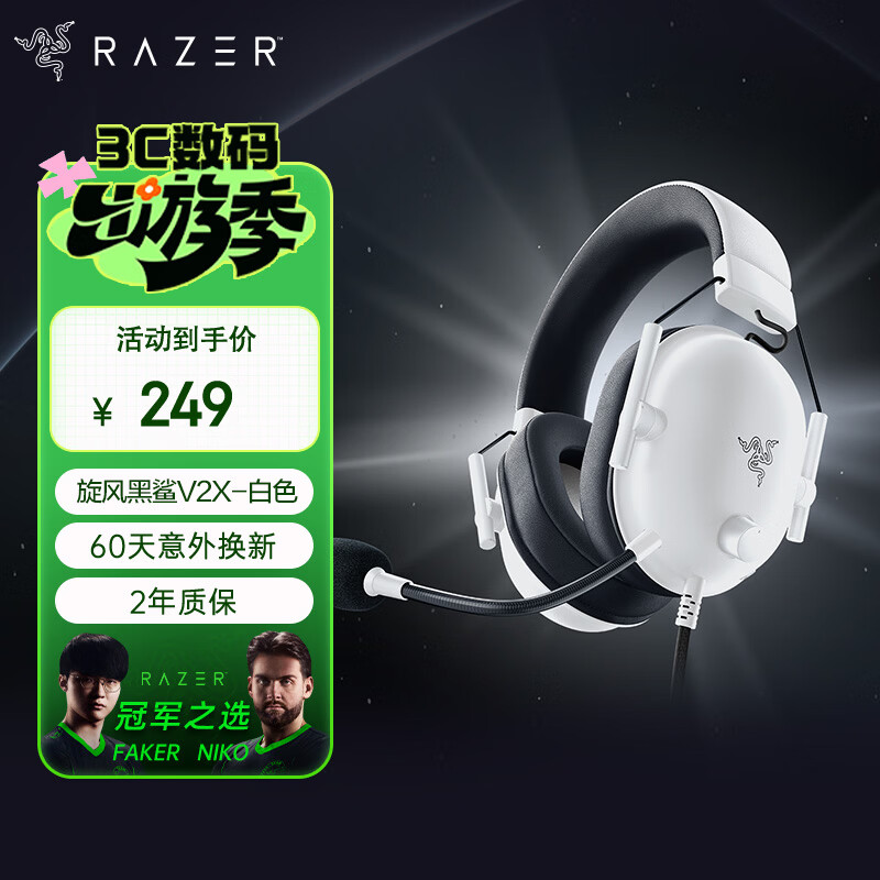 雷蛇(Razer)旋风黑鲨V2 X 有线头戴式电竞游戏耳机耳麦 被动降噪 吃鸡神器 白色 适配三角洲行动