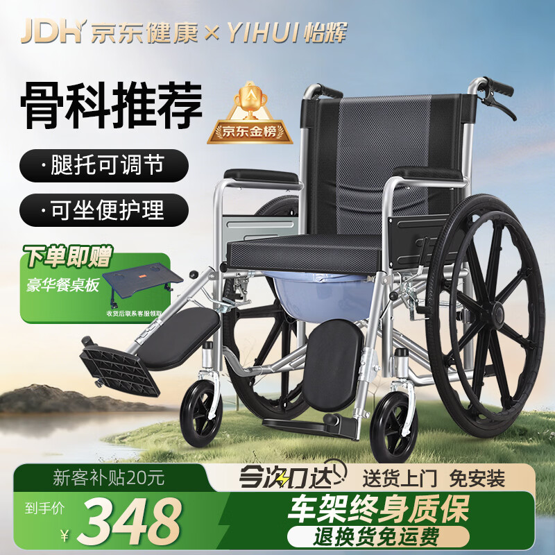 怡辉(YIHUI)轮椅轻便折叠老人专用出行带坐便器便携式骨折可抬腿大小便代步车