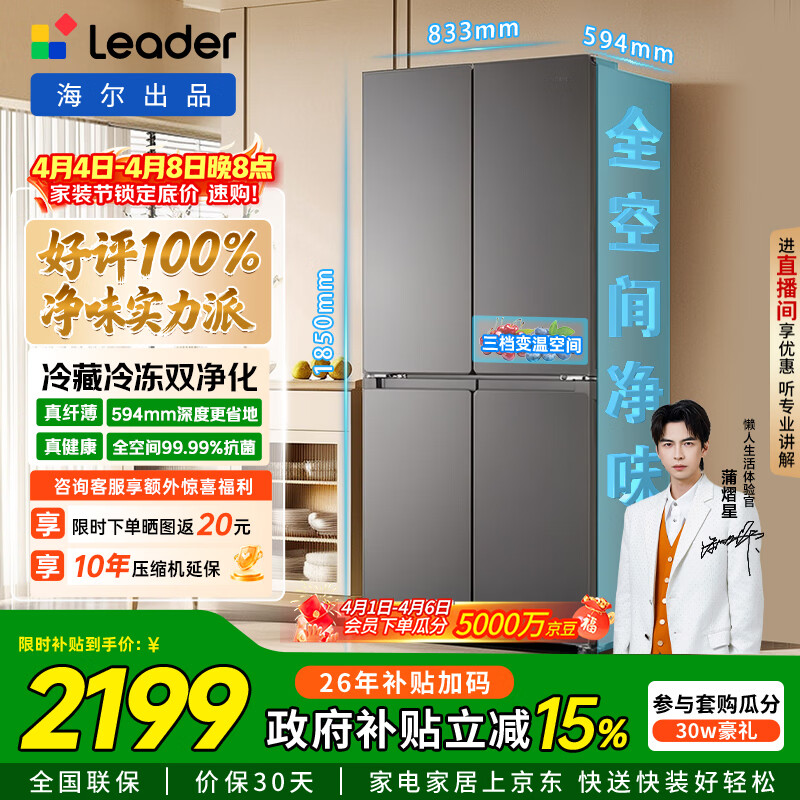 海尔(Haier)冰箱出品统帅懒人510系列502L十字门冰箱超薄冷藏冷冻双循环双净化大容量LTD-510WS9U1国家补贴