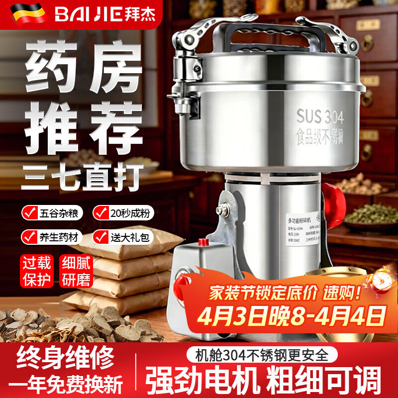 拜杰研磨机中药粉碎机商用磨粉机三七超细打粉机304不锈钢磨粉破碎机 新型研发 摇摆800A 强劲电机