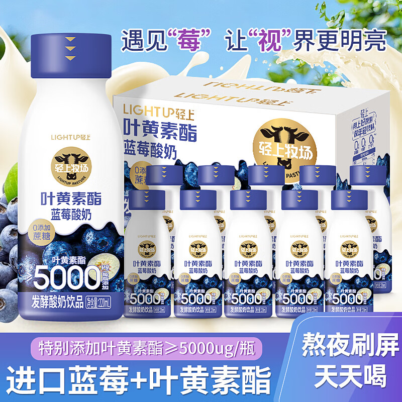 轻上【年货礼盒】轻上100%果汁含量苹果汁红富士苹果果汁饮品整箱装 叶黄素蓝莓酸奶饮品220ml*10瓶
