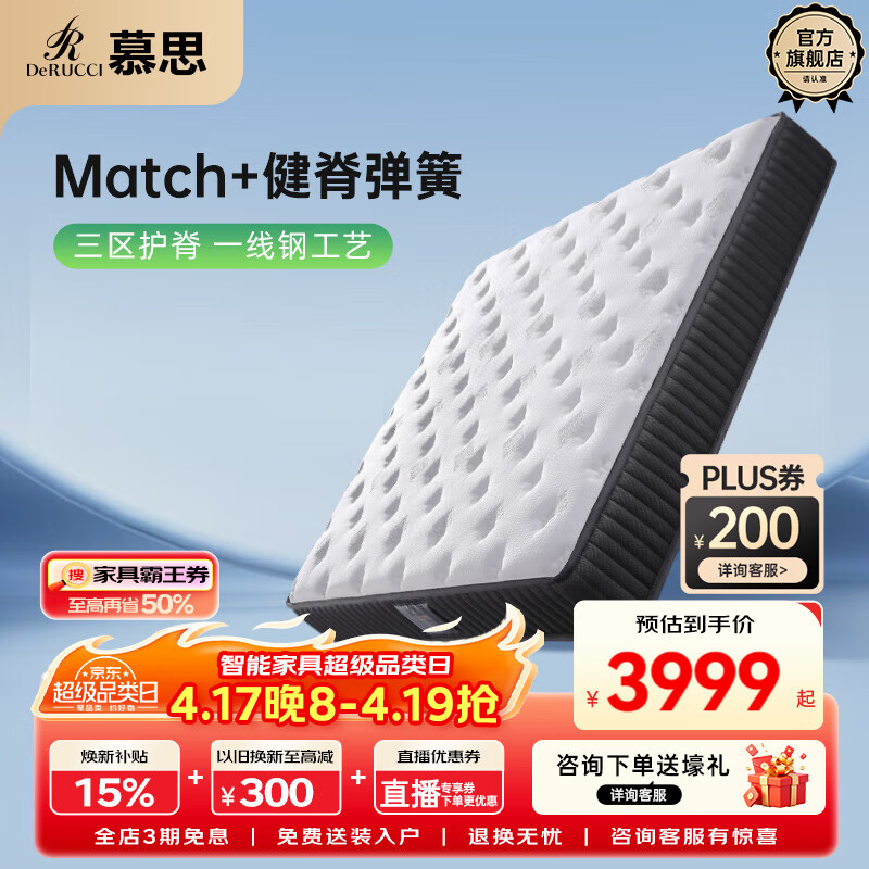 慕思(de RUCCI)健脊2cm乳胶三区护脊弹簧床垫乳胶床垫双面两用 1.8*2米软硬适中