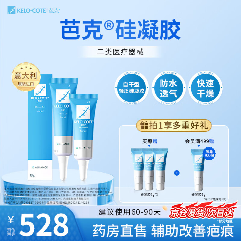 芭克kelocote官方硅凝胶巴克疤克去疤祛疤膏硅酮凝胶治疗修复改善疤痕 15g+6g【超值组合装】