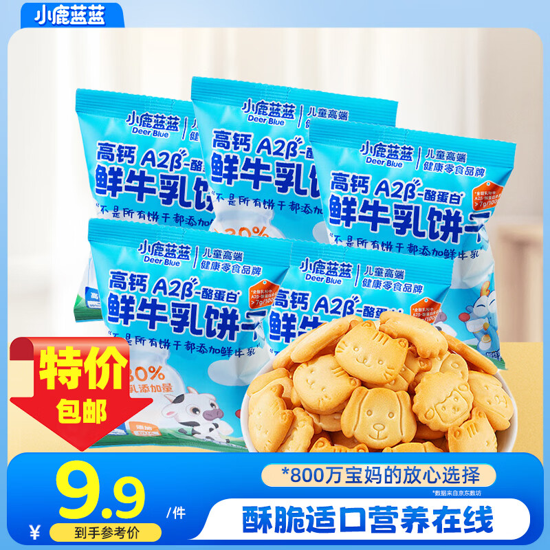 小鹿蓝蓝鲜牛乳饼干儿童零食牛奶饼干宝宝辅食小饼干营养早餐休闲食品 鲜牛乳饼干【尝鲜装】5袋