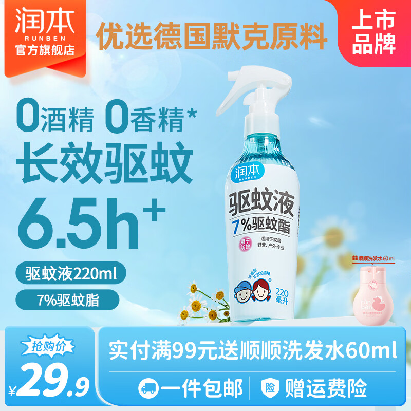 润本驱蚊液驱蚊喷雾防蚊液花露水户外防蚊虫叮咬驱蚊水蚊怕水防蚊喷雾 220ml 1瓶 【长效防蚊6.5h】
