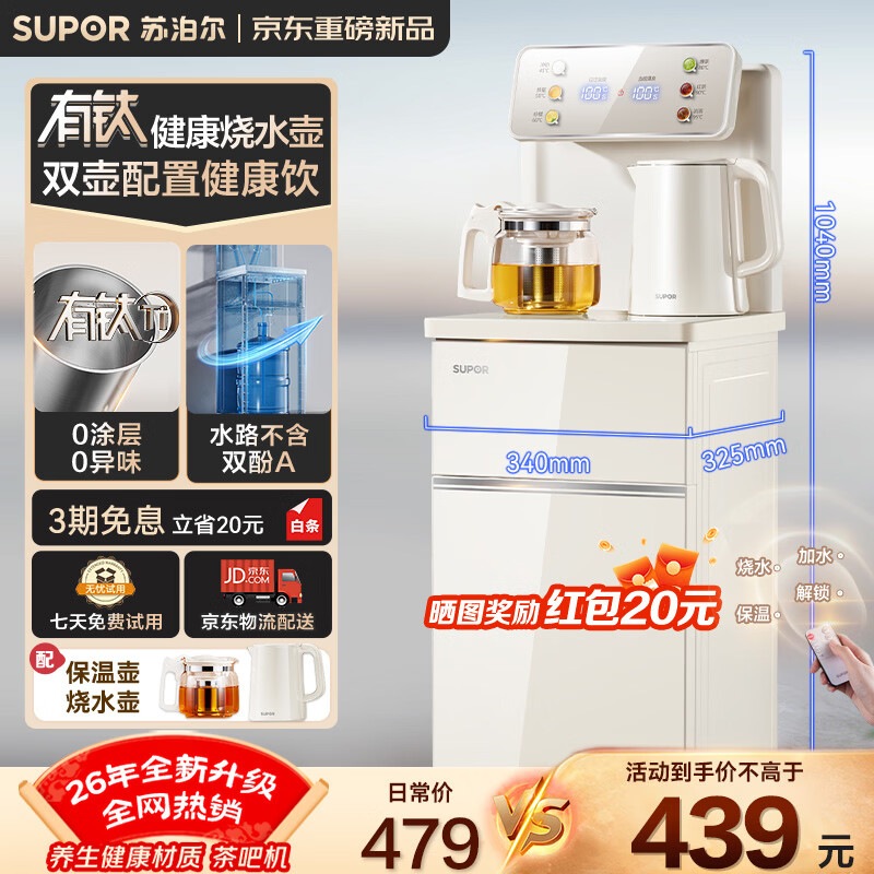 苏泊尔(SUPOR)【钛泉系列】茶吧机家用高端客厅用2026年新款【有钛】饮水机下置水桶恒温烧水壶智能一体自动上水 钛泉系列【双彩屏显+一机多用】 制热型