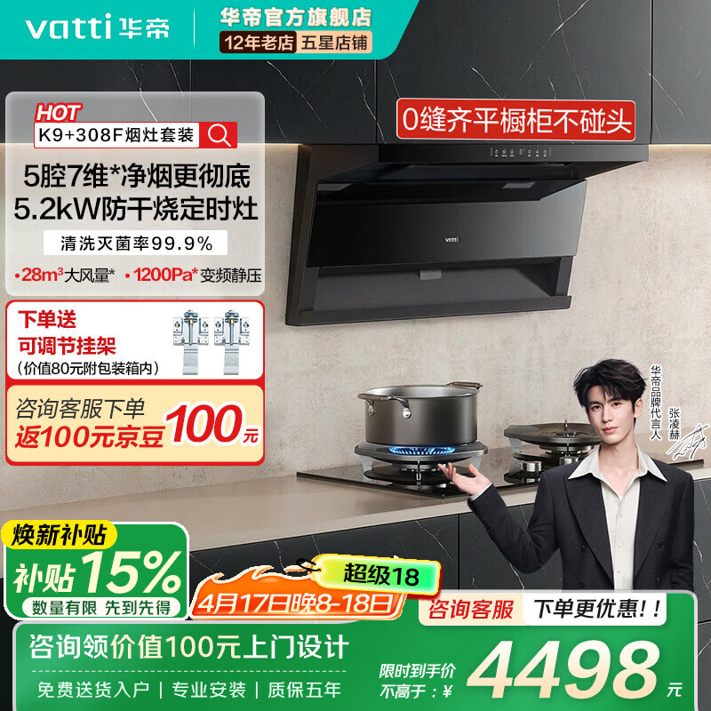 华帝(VATTI)K9烟灶套装【小飞翼Pro K9系列 】超薄顶侧双吸28风量大吸力自清洗烟灶联动抽油烟机灶具以旧换新 【防干烧定时联动套装】K9+308F燃气灶 天然气