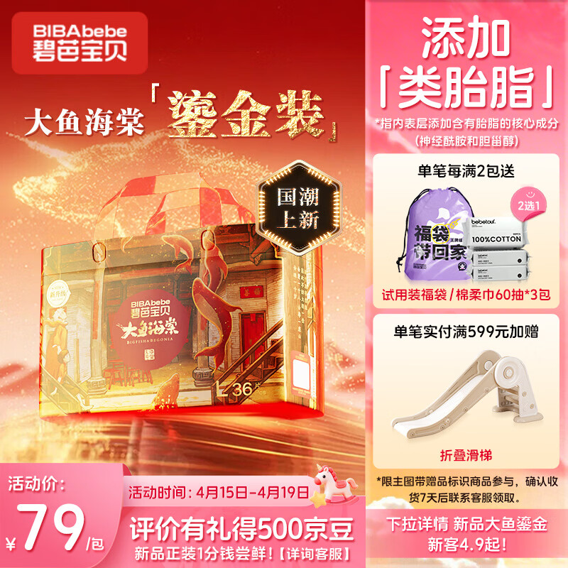 碧芭宝贝大鱼海棠鎏金装拉拉裤L码36片(9-14kg)婴儿尿不湿超薄 添加类胎脂