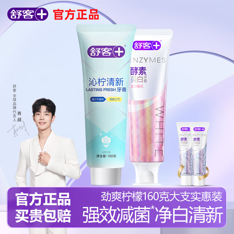 舒客专研沁柠清新强效减菌持久清凉牙膏男女家庭实惠装官方正品 沁柠 160g*1支 +樱花120g+小样*2