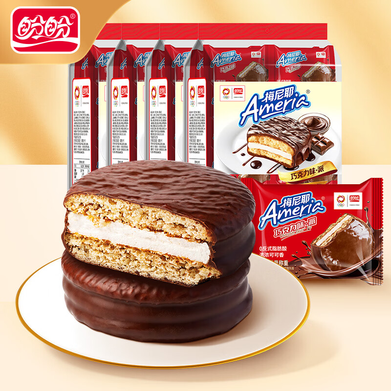 盼盼梅尼耶巧克力味·派代餐办公室早餐面包休闲女生零食糕点夹心蛋糕 巧克力味*1+草莓味*1【共20枚】