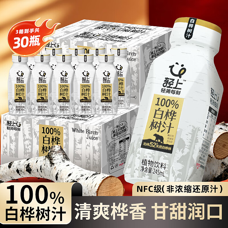 轻上【年货礼盒】轻上椰子水100%椰汁孕妇果蔬汁饮料 白桦树汁245ml* 30瓶