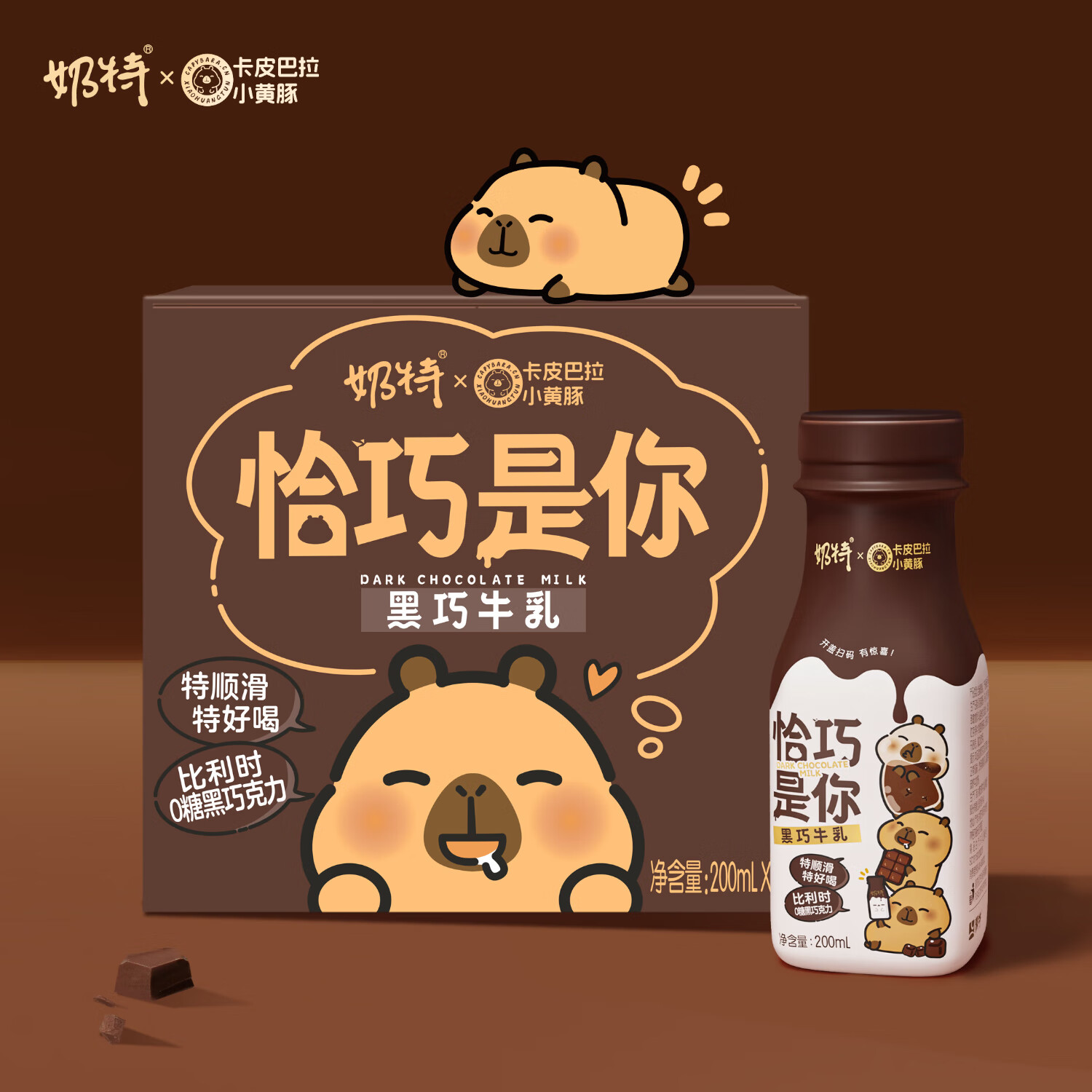 蒙牛奶特黑巧牛乳黑巧味全脂礼盒装送女友【卡皮巴拉定制装】 200ml*6瓶