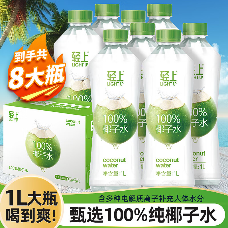轻上【年货礼盒】轻上椰子水100%椰汁孕妇果蔬汁饮料 椰子水1L*8瓶