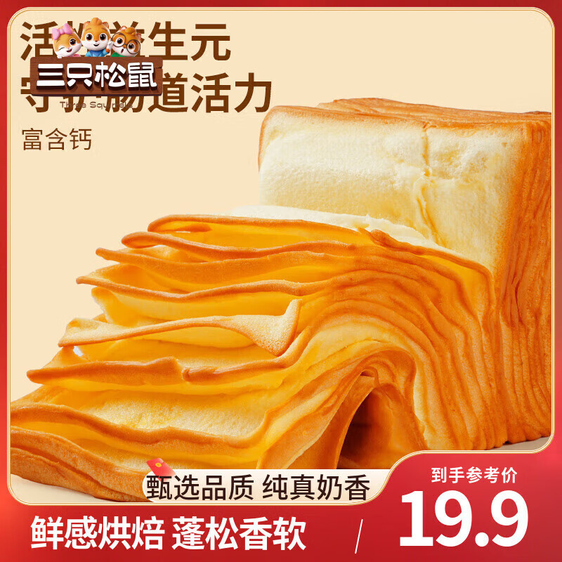 三只松鼠高钙益生元水牛乳千层吐司早餐代餐下午茶点心办公室零食 水牛乳千层吐司/益生元高钙款/1000g