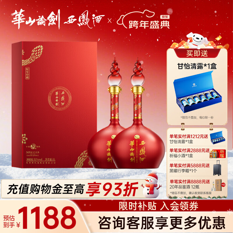 西凤华山论剑52度蛇年纪念酒经典凤香型白酒名酒聚餐送礼礼盒 52度 1000mL 2盒