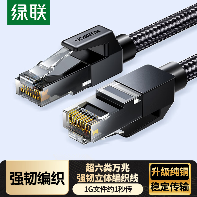 绿联(UGREEN) 六类网线CAT6类千兆八芯双绞非屏蔽跳线8芯 工程家用监控电脑宽带网络连接线 黑色(编织圆线) 2米
