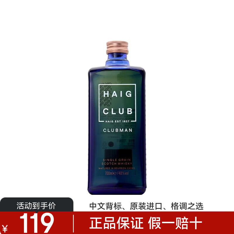 翰格雅爵HAIG CLUB单一谷物苏格兰威士忌洋酒原装进口正品行货 翰格雅爵谷物威士忌700ml