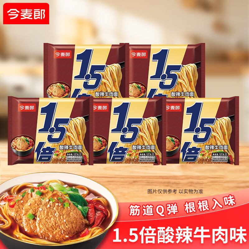 今麦郎方便面1.5倍番茄牛肉红烧牛肉味泡面大分量面饼袋装速食食品 【5袋尝鲜】酸辣牛肉面127g