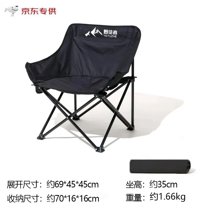 野徒者户外折叠椅露营椅子躺椅便携折叠月亮椅小凳子折叠凳钓鱼凳 【高密承重】曜石黑+收纳袋 出口质量加粗