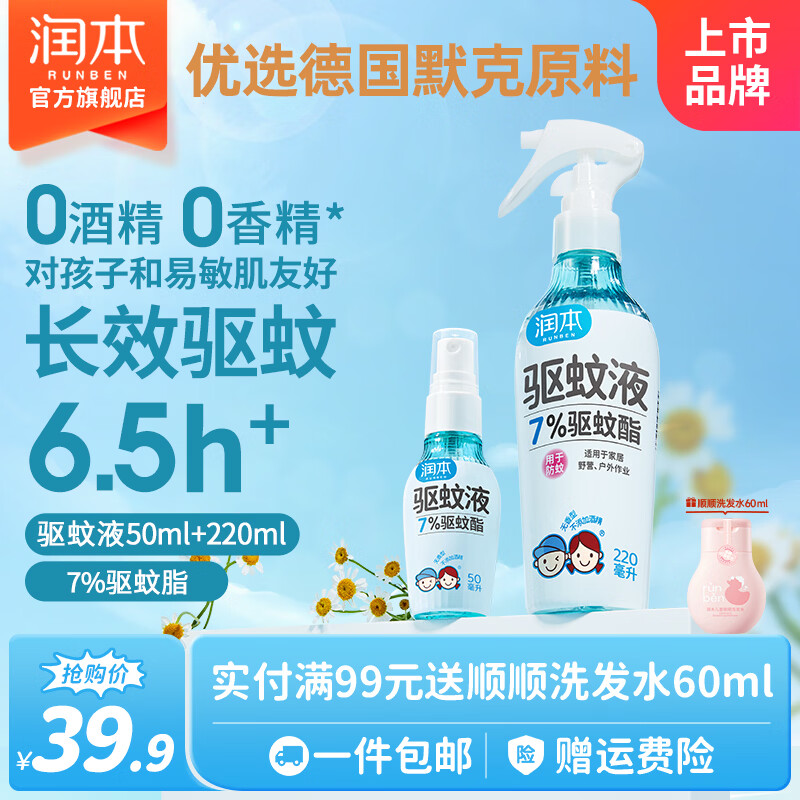 润本驱蚊液驱蚊喷雾防蚊液花露水户外防蚊虫叮咬驱蚊水蚊怕水防蚊喷雾 220ml 1瓶 +50ml【热销主推】