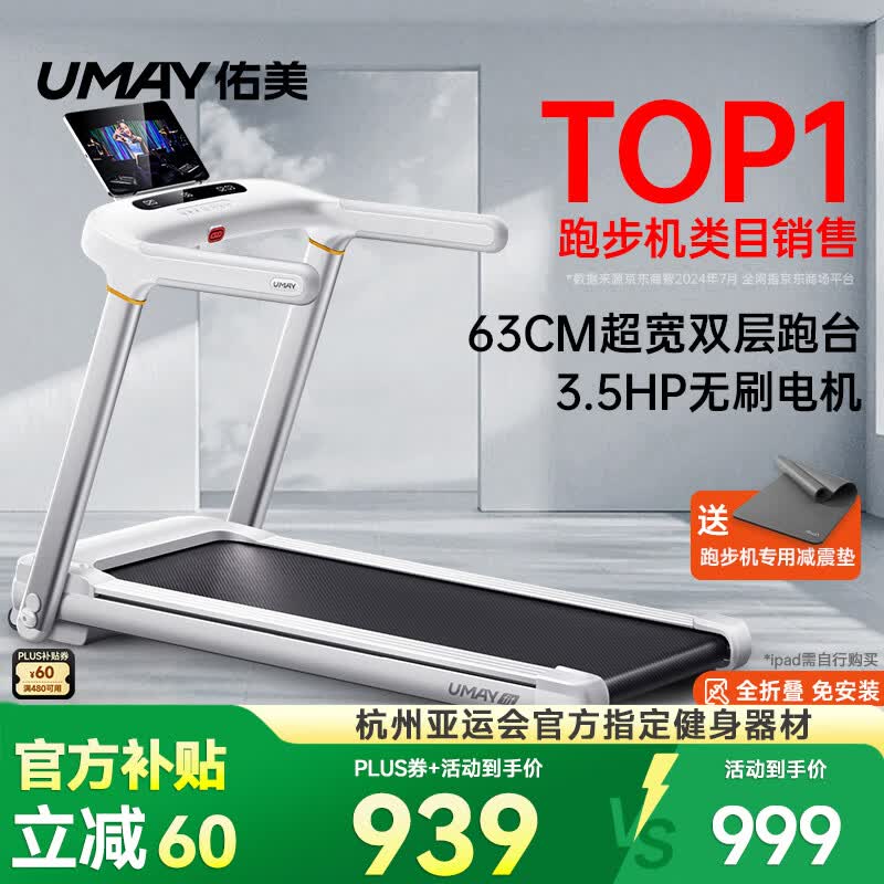 佑美U2Pro跑步机家庭用电动爬坡登山室内可折叠收纳降噪走步机爬坡机 无坡度版-63CM跑台-全折叠免安装