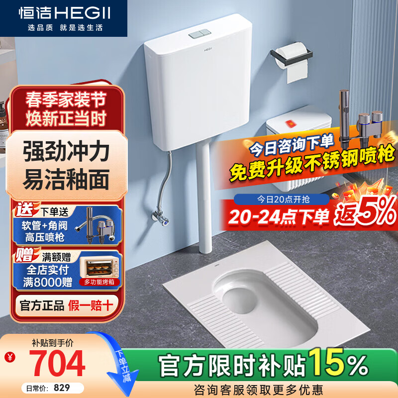 恒洁(HEGII)专利款蹲便器水箱套装超薄防溅防臭卫生间蹲便蹲坑蹲厕大便器3026 【专利款超薄防外溅】3032B+6030