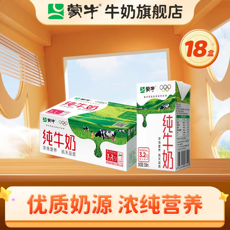 蒙牛全脂纯牛奶营养美味送长辈礼盒装部分2月产 【送礼推荐】250ml×18盒
