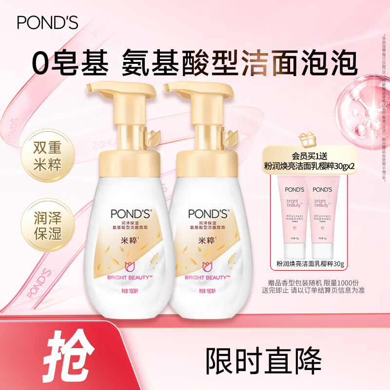 旁氏(POND'S)米粹润泽保湿洁面泡泡160mlx2 氨基酸洗面奶男女去角质