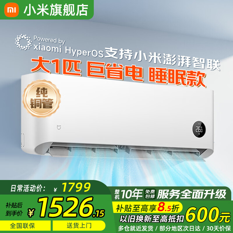 小米(MI)米家空调 1.5匹 巨省电 新一级能效 节能省电 变频冷暖家用卧室壁挂式自清洁舒适空调挂机 大1匹 一级能效 行业热销