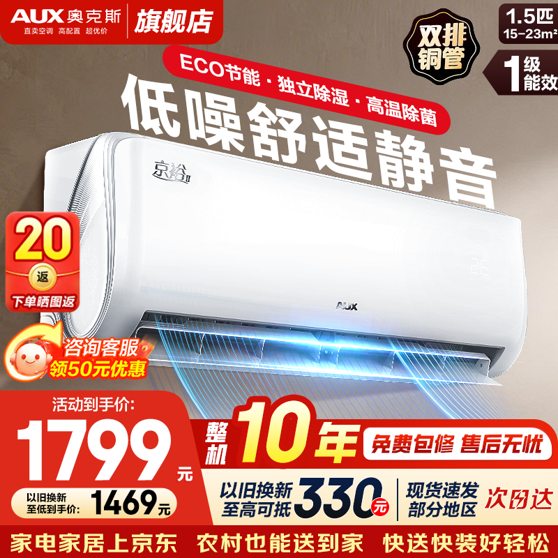 奥克斯(AUX)大1.5匹空调挂机大1匹省电侠Pro新一级能效变频冷暖 挂式卧室 铜管空调 以旧换新 大1.5匹一级能效京裕Ⅱ 节能静音