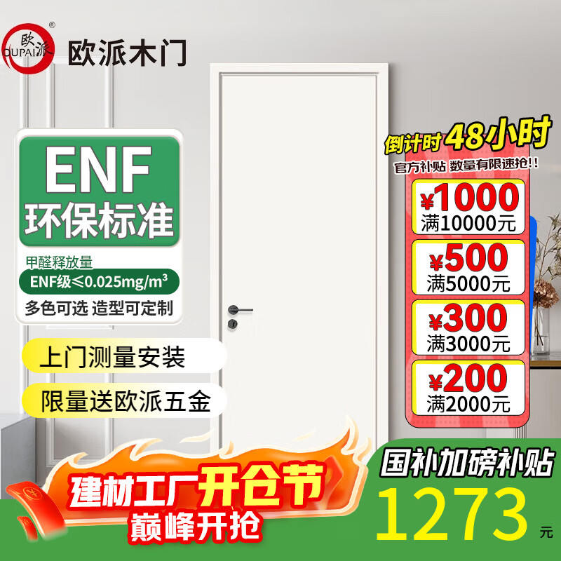 欧派(OUPAI)木门卧室门室内门厨房门 ENF级环保生态膜降噪免漆门 厨房推拉双开门极窄隐形门可定制 T系平板门-三方降噪+PET肤感+碳晶面板