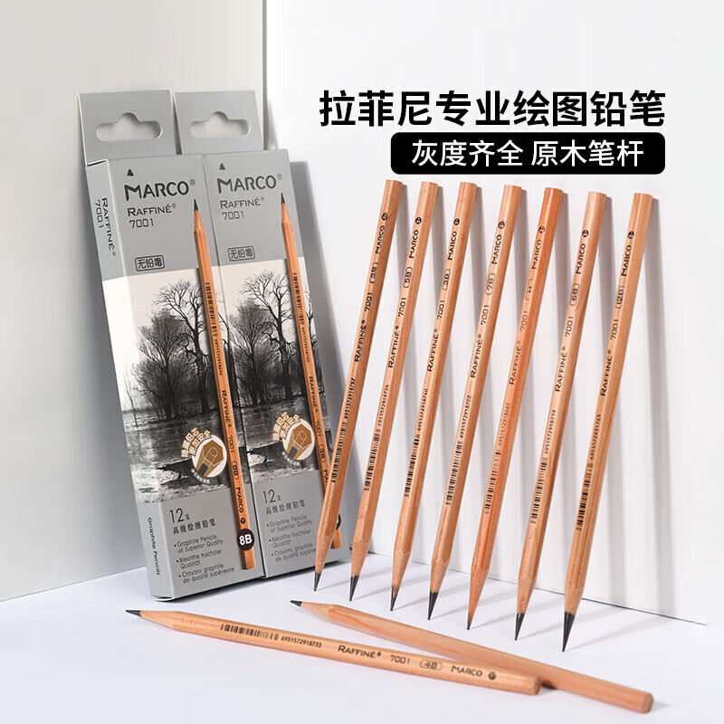【全网低价】马可(MARCO) 铅笔12支 原木专业美术HB素描六角杆手绘速写绘图笔纸盒装学生初学者考试画画专用7001-HB 速写 马克笔绘画