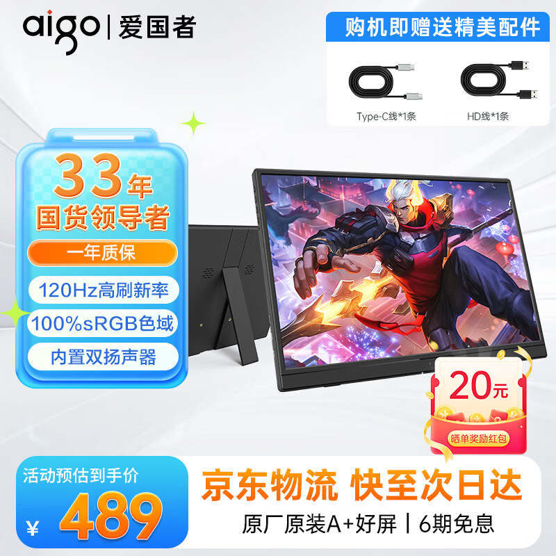 爱国者aigo便携显示器 IPS电脑手机便携屏笔记本支架显示屏扩展屏 PS4/5 Switch副屏Type-C一线通 16英寸/电竞游戏款/1200P/120Hz