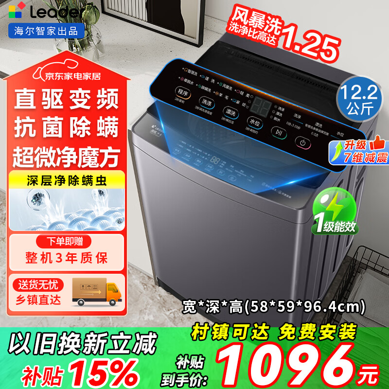 海尔(Haier)洗衣机全自动波轮12公斤直驱变频一级能效智能预约抗菌除螨大容量神童洗衣机防缠绕速洗 以旧换新 统帅】12.2kg直驱变频+7维减震+智能预约 波轮