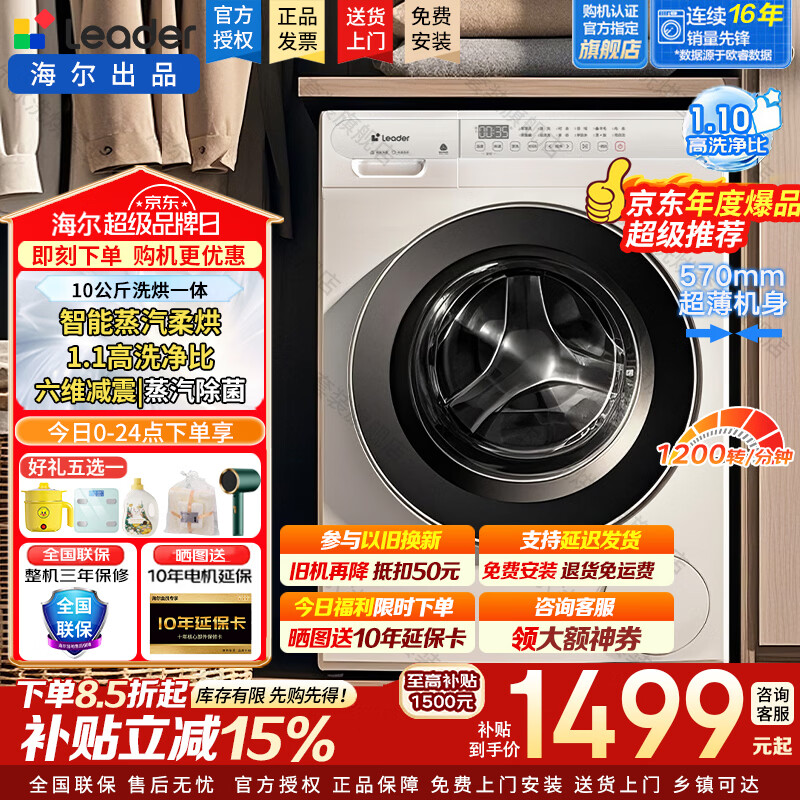海尔(Haier)洗衣机滚筒全自动出品家用10公斤大容量洗烘一体一级能效除菌变频超薄以旧换新家电补贴15% 超薄嵌入丨烘干即穿丨空气洗 滚筒洗烘 10kg