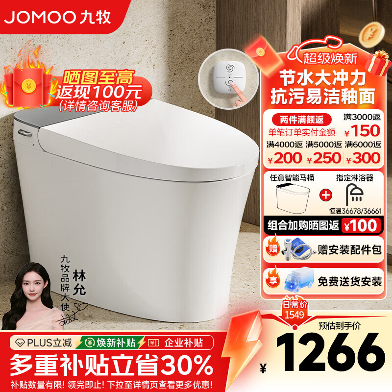 九牧(JOMOO)轻智能马桶一体机全自动冲水恒温座圈抗菌虹吸式坐便器 【随心贴零压轻音冲】SQ6366 400mm (390以上选择)