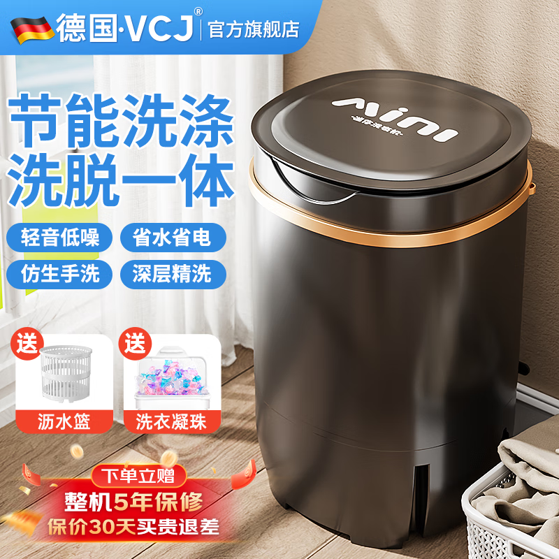 VCJ洗衣机半全自动迷你洗衣机小型洗脱一体小型家用母婴内衣裤洗袜子神器儿童单身人宿舍出租房 第10代升级【深层精洗*定时快洗】暗夜黑