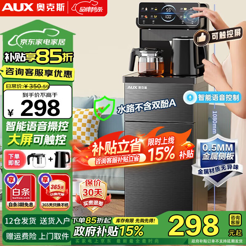 奥克斯(AUX)茶吧机家用多功能智能遥控大屏双显立式下置式饮水机 升级加厚侧板 多档调温 语音遥控丨大屏触控 制热型