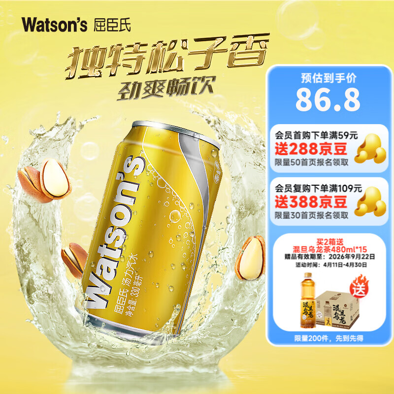 屈臣氏(Watsons)苏打汽水 气泡水 特调饮料 330ml*24罐 整箱装 聚会饮品 0脂 汤力口味(汤力水)