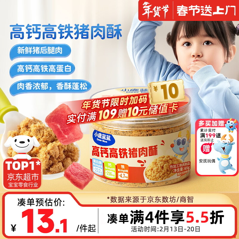 小鹿蓝蓝宝宝高蛋白高铁猪肉酥65g/罐儿童零食拌饭拌面调味