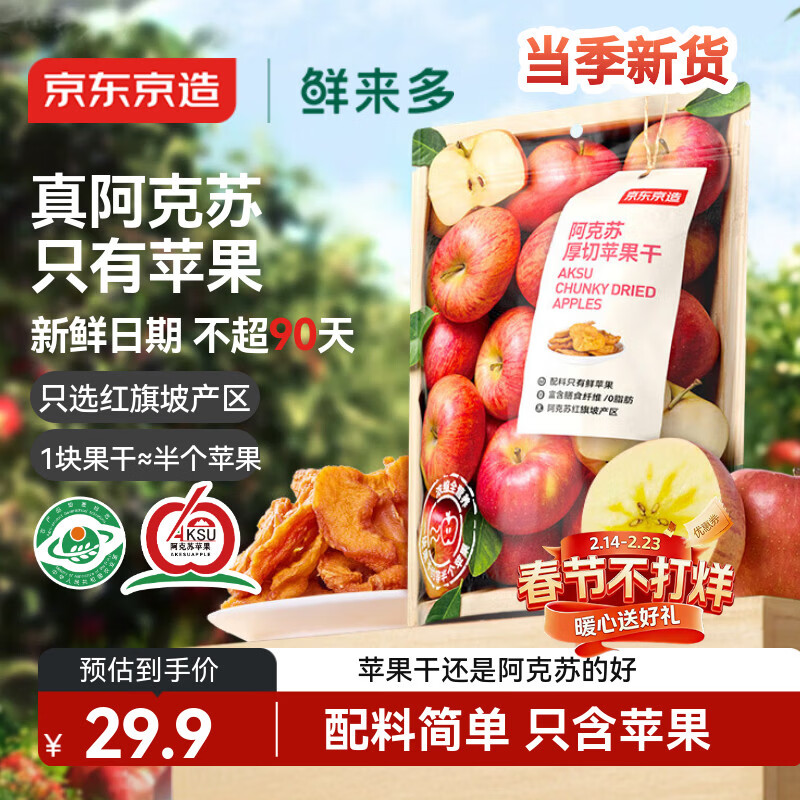 京东京造鲜来多阿克苏厚切苹果干335g 三蒸三晒无添加独立包装儿童新疆健