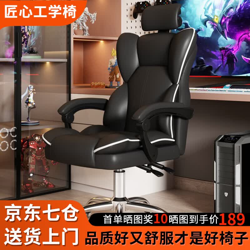 奥伦福特 电脑椅办公椅子电竞椅家用人体工学椅老板椅主播靠背椅皮革转椅 创意工学椅-黑+乳胶【二代升级】