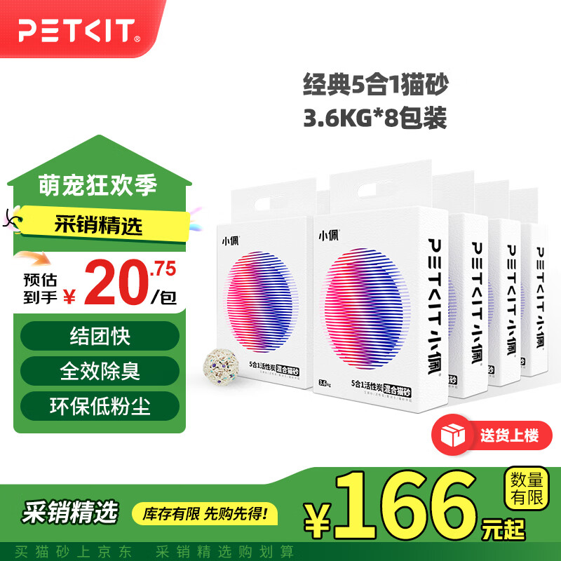小佩五合一混合猫砂 活性炭豆腐混合 膨润土猫砂可冲厕所除臭 5合1混合砂 3.6kg*8包 规格