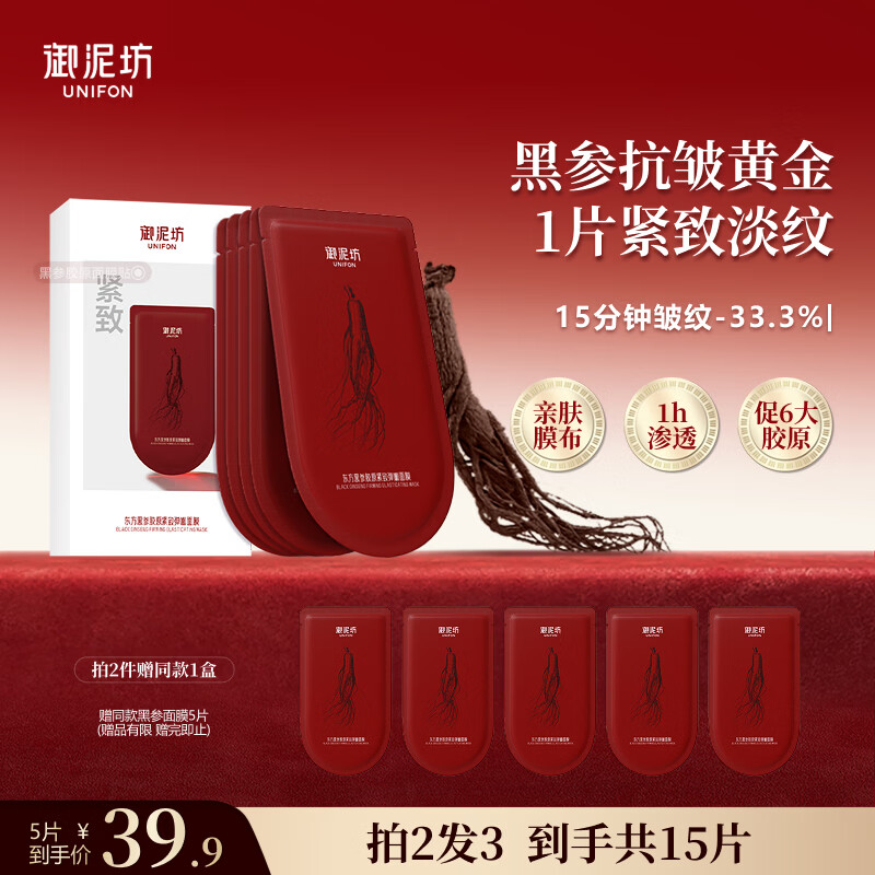 御泥坊东方黑参胶原紧致弹嫩面膜5片 紧致保湿 补水淡纹 节日礼物