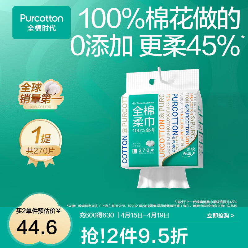 全棉时代【孙颖莎同款】悬挂式一次性100%棉洗脸巾壁挂式洁面巾抽取棉柔巾 【经典悬挂款】 270片*1提
