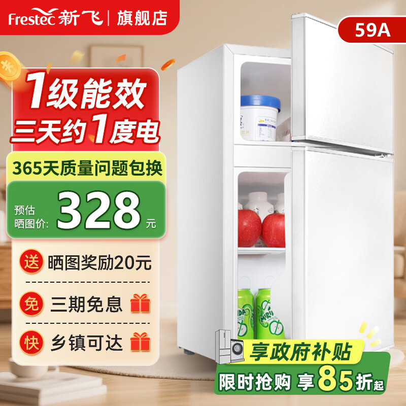 新飞冰箱小型租房用 一级能效冷 藏冷冻两用1-2人家用小冰箱 出租房双门电冰箱办公室两门 26年升级 59A一级能效【保温升级】白