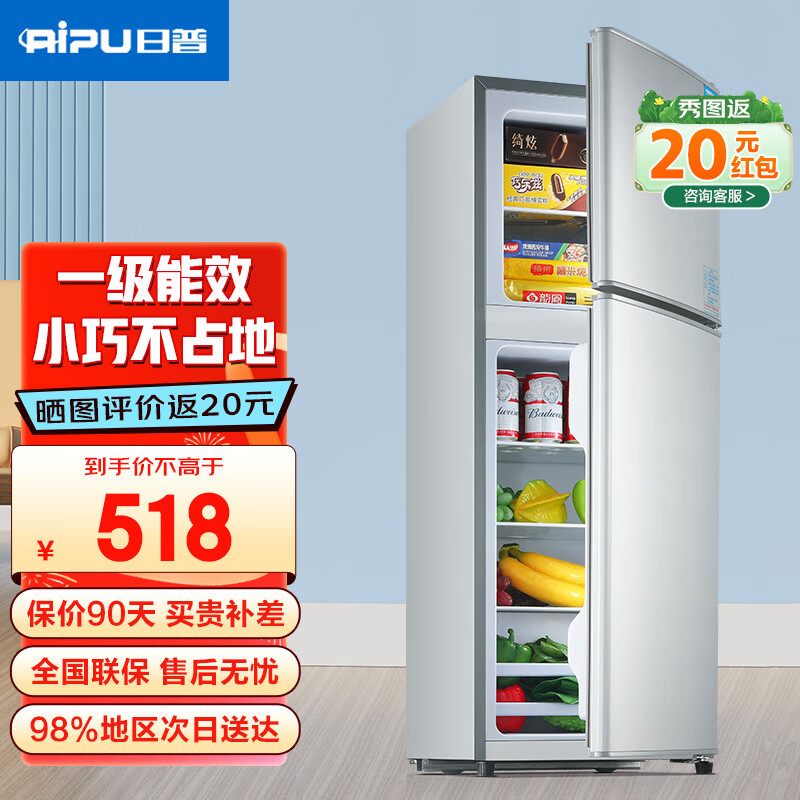 日普(RIPU)双门冰箱小型家用一级能效小冰箱迷你小型宿舍出租房办公室节能省电冷藏冷冻电冰箱 【一级能效】156升搁架款【冷藏4层冷冻2层】